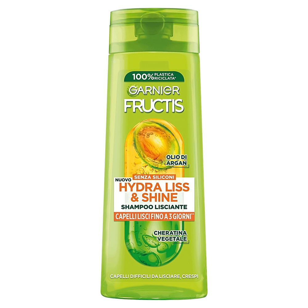 Shampo Fructis Hydra Liss & Shine, shampo drejtuese, ideale për flokë të vështirë për t'u drejtuar dhe të dredhur. Formula e pasuruar me vaj argani, zbut dhe i jep shkëlqim intensiv flokëve. Për më tepër, teknologjia e pasuruar me keratin vegjetal lyen fibrën e flokëve për të lëmuar flokët me një efekt kundër demtimit.