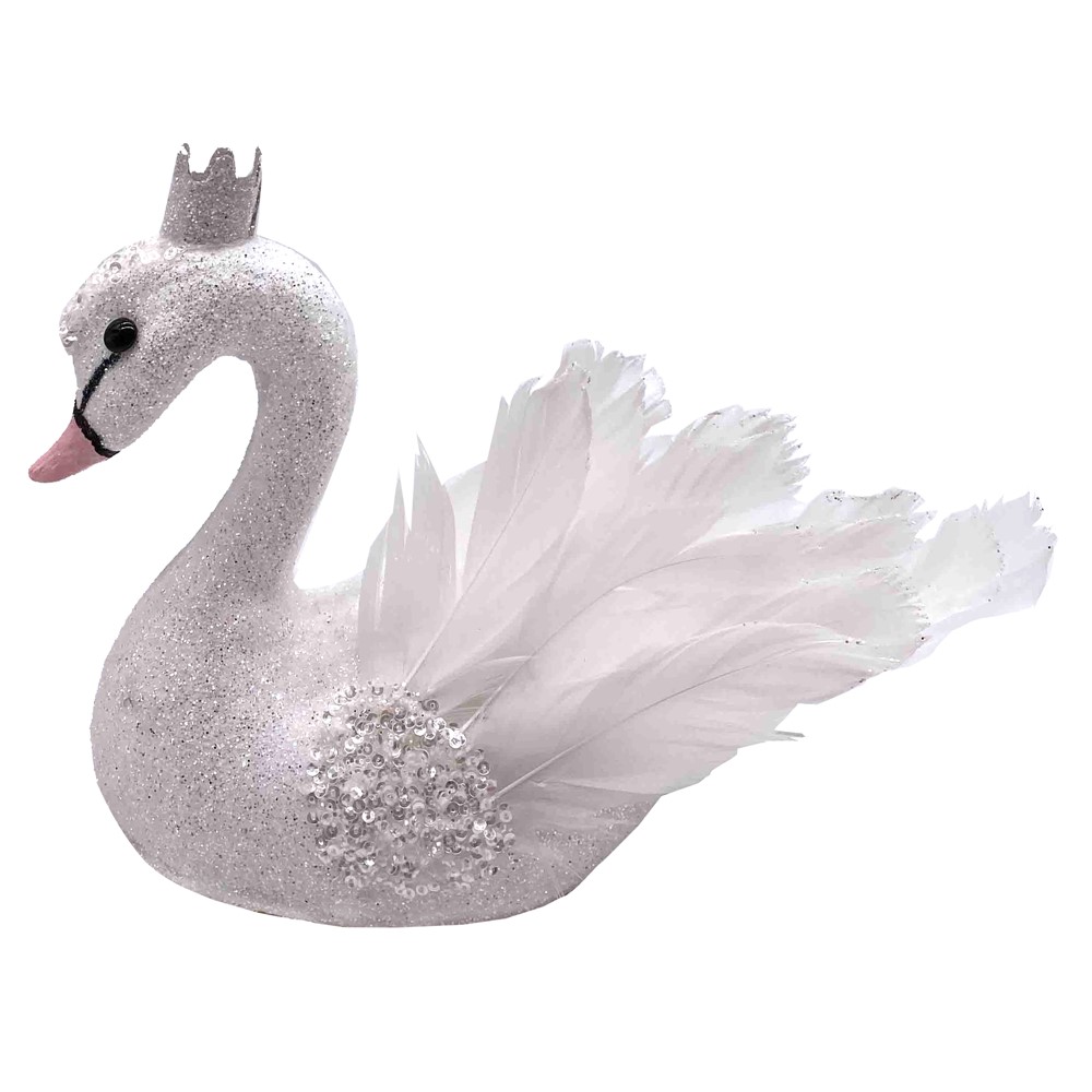 Decorative bird, Swan, white/pink, 11x27xH20 cm