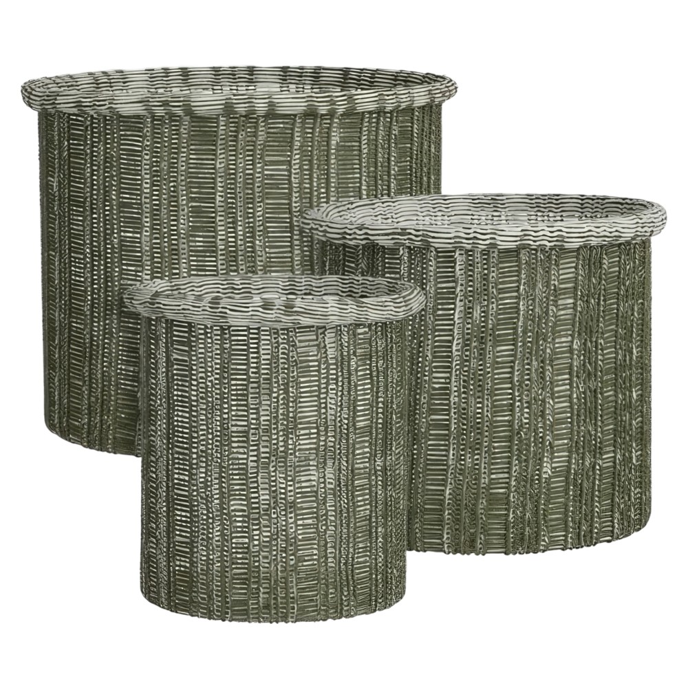 Shportat e magazinimit "Danfield", një set prej 3 copësh, janë zgjidhja e përsosur për organizimin dhe dekorimin e shtëpisë suaj në një mënyrë elegante dhe funksionale. Këto shporta janë bërë nga ratan me ngjyrë jeshile dhe vijnë në tri madhësi të ndryshme për të përshtatur nevojat tuaja të depozitimit. Shportat ofrojnë një hapësirë të mjaftueshme për të mbajtur dhe organizuar gjërat e vogla dhe të mesme në shtëpinë tuaj, duke ruajtur rendin dhe harmoninë në ambientet tuaja.