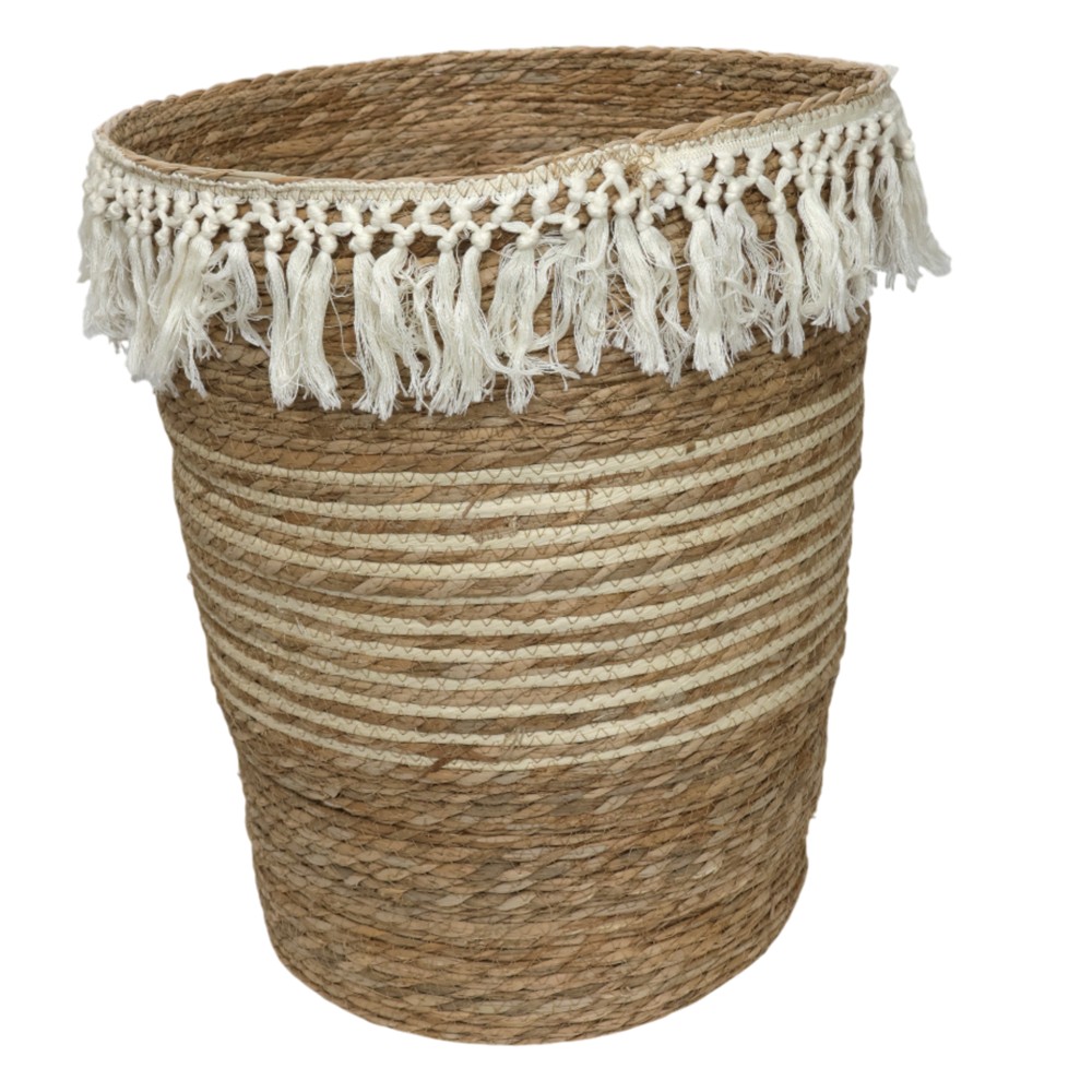 Stil dhe elegancë janë dy elementët që karakterizojë këtë shportë magazinimi e cila vjen në përmasat Ø26xH24 cm cm duke u përshtatur lehtësisht me hapësirat tuaja. Ju mund ti merrni ato si set duke organizuar sendet tuaja në mënyrë të përsosur, por edhe të zgjidhni ta përdorni ashtu si ju dëshironi. E punuar me kashtë dhe më një ndërthurje mes ngjyrave të bardhë dhe kafe natyrale, është zgjedhja ideale për adhuruesit e një stili minimalist me linja të pastra. Shporta ka një stil boho dhe kombinohet lehtësisht me ambiente të ndryshme. Ju mund ta përdorni atë në tualet për të organizuar sende të ndryshme të përdorimit vetjak, po ashtu edhe në dhomën tuaj të gjumit, pra mund të kenë opsione dhe alternativa të ndryshme përdorimi sipas nevojave tuaja.