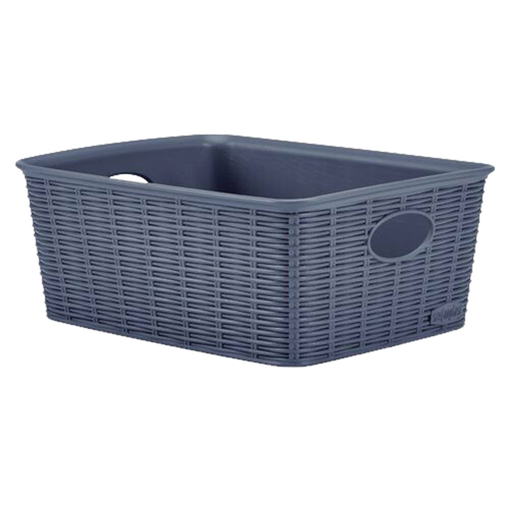 Shporta drejtkëndëshe nga linja Elegance, në ngjyrë blu dhe në përmasën 25x19.5xH10 cm përshtatet si në tualet, në dhomë ose në kuzhinë. Shporta është një alternativë e shkëlqyer e shportave me thurje, që do të thotë ka një material plastik, që të jepë idenë e thurrjes por me një struktrë të thjeshtë dhe të lëmuar. Ky dizajn modern i kombinuar me vlerat e shërbimeve e bën shportën të përshtatet në mënyrë të përkryer në rregullimin e çdo hapësire të brendshme.