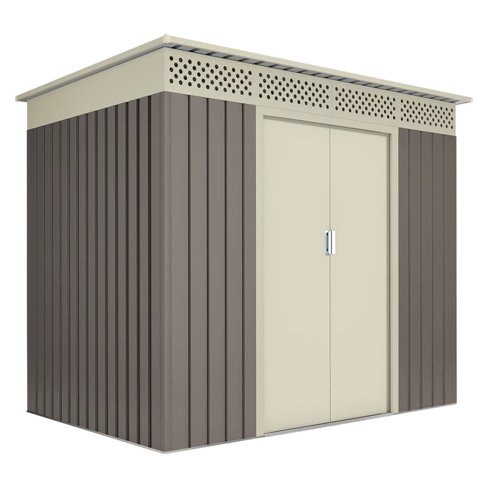 Shtëpiza e magazinimit Nykop është një zgjedhje funksionale dhe e qëndrueshme për ruajtjen e pajisjeve, veglave apo aksesorëve të kopshtit. Me përmasa të jashtme 213 x 142 x 184 cm dhe një sipërfaqe mbulimi prej 3.02 m², ajo ofron hapësirë të mjaftueshme për organizim pa zënë vend në oborrin apo kopshtin tuaj. E ndërtuar nga çelik i galvanizuar me trashësi 0.25 mm, Nykop garanton rezistencë afatgjatë ndaj korrozionit, një tregues i cilësisë dhe qëndrueshmërisë së lartë të materialit. Çatia e pjerrët ndihmon në largimin e ujit duke parandaluar krijimin e lagështirës.Aksesimi është i lehtësuar falë hapjes me dy dyer me përmasë totale 96 x 162 cm dhe rampës ndihmëse, ndërsa hapësira e ventilimit e integruar në pjesën e sipërme ballore siguron qarkullim më të mirë të ajrit. Me peshë neto prej 50 kg, ngjyrë bezhë neutrale që përshtatet lehtësisht me çdo ambient të jashtëm dhe përmasa të brendshme prej 203 x 117 x 184 cm, kjo shtëpizë përfaqëson kombinimin ideal midis estetikës, funksionalitetit dhe qëndrueshmërisë.
