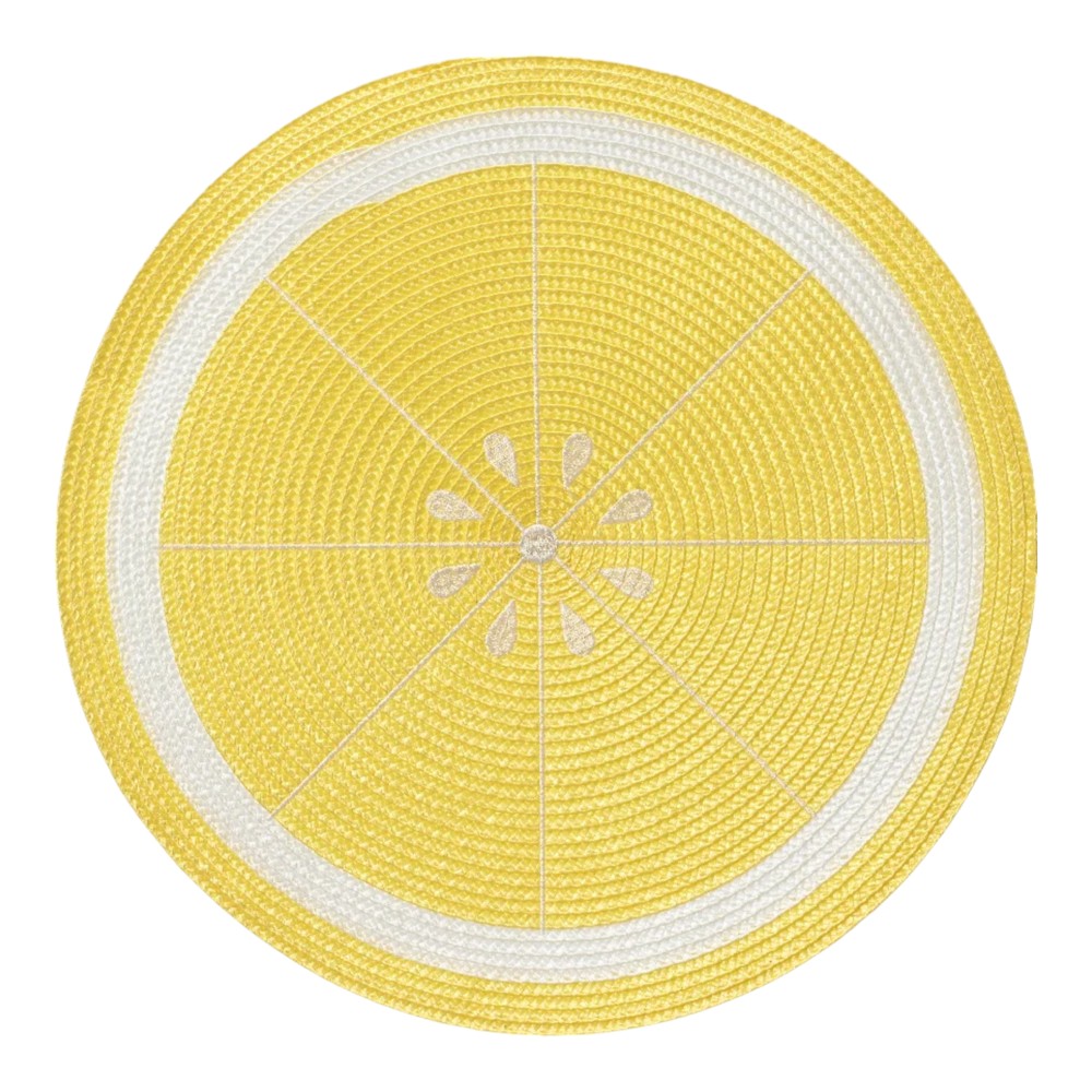 Kjo shtroje tavoline PVC në formë limoni, me ngjyrë të verdhë të ndezur, sjell një prekje freskie dhe gëzimi në çdo tryezë. Me diametrin 38 cm dhe trashësinë 0.1 cm, është praktike dhe e lehtë për t'u pastruar, duke mbrojtur tryezën nga njollat dhe gërvishtjet.
