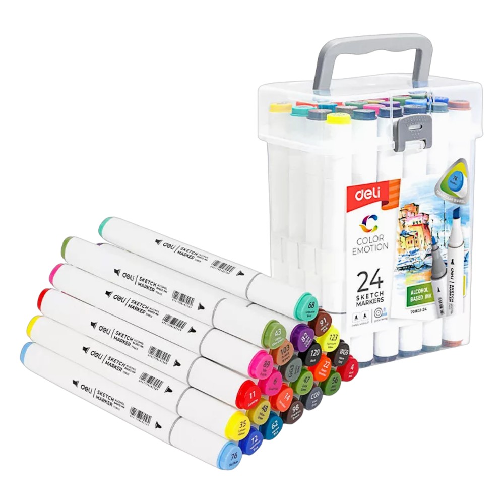 Sketch marker, Deli, 2-tip, 24 colors, 1 pack