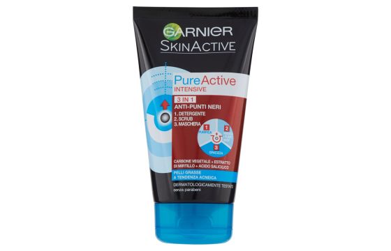 Skrub Garnier per fytyren e pasuruar me formulë inovative te qymyrit me origjinë natyrore, i njohur për fuqinë e tij absorbuese dhe pastruese. Mund të përdoret si pastrues, skrab ose maskë për të luftuar edhe pikat e zeza më rezistente, duke ndihmuar në parandalimin e rishfaqjes së tyre. Rezultati: U vu re efektiviteti. 3 VEPRIMET NË 1 1 Xhel pastrues: papastërtitë eliminohen me 96%* 2 Scrub: pikat e zeza zvogëlohen dukshëm me 87%* 3 Maskë: sebumi i tepërt zvogëlohet me 96% pas aplikimit të parë * *Testi kozmeto-klinik, 51 vullnetarë, 4 javë përdorim