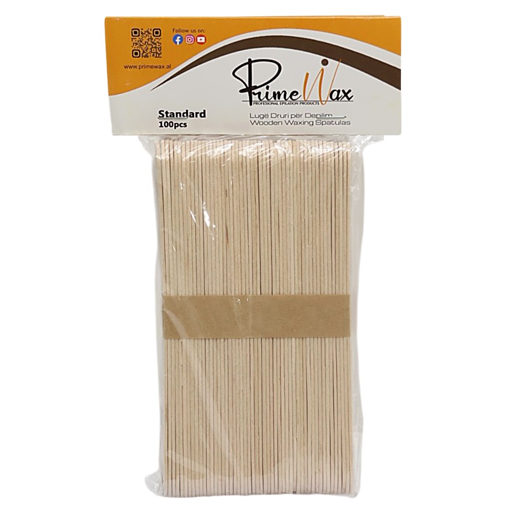 Spatulat e depilimit Prime Wax janë të dizajnuara për aplikim të saktë dhe higjienik të dyllit gjatë procedurave të depilimit. Të përshtatshme si për përdorim profesional në sallone bukurie, ashtu edhe për përdorim personal në shtëpi. Të prodhuara nga material cilësor dhe rezistent, këto spatula sigurojnë shpërndarje uniforme të dyllit dhe kontroll maksimal gjatë aplikimit.