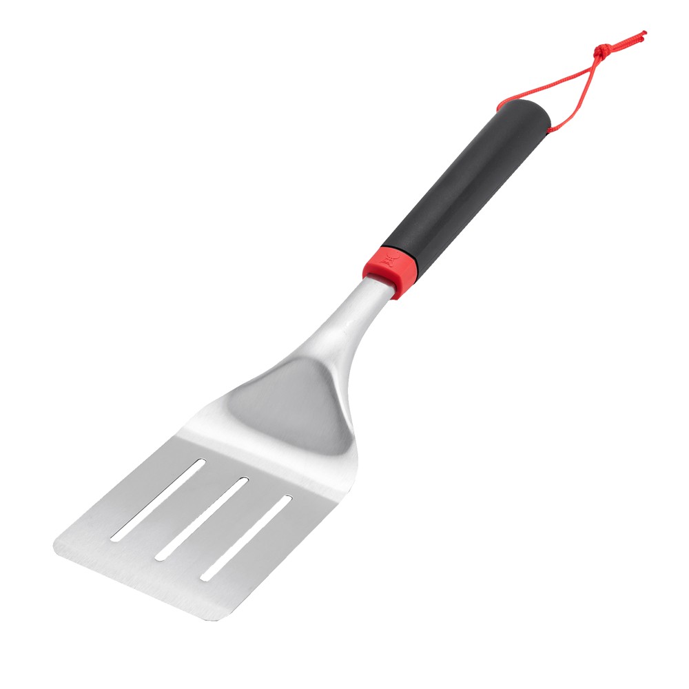 Kthyese Weber prej çeliku inoks do të rrokulliset lehtësisht hamburgerët dhe do të heqë biftekët nga një barbekju, e cila është gjithashtu mjaft e gjatë për t'i mbajtur duart larg nxehtësisë dhe është e sigurt për larje enësh për pastrim të lehtë.