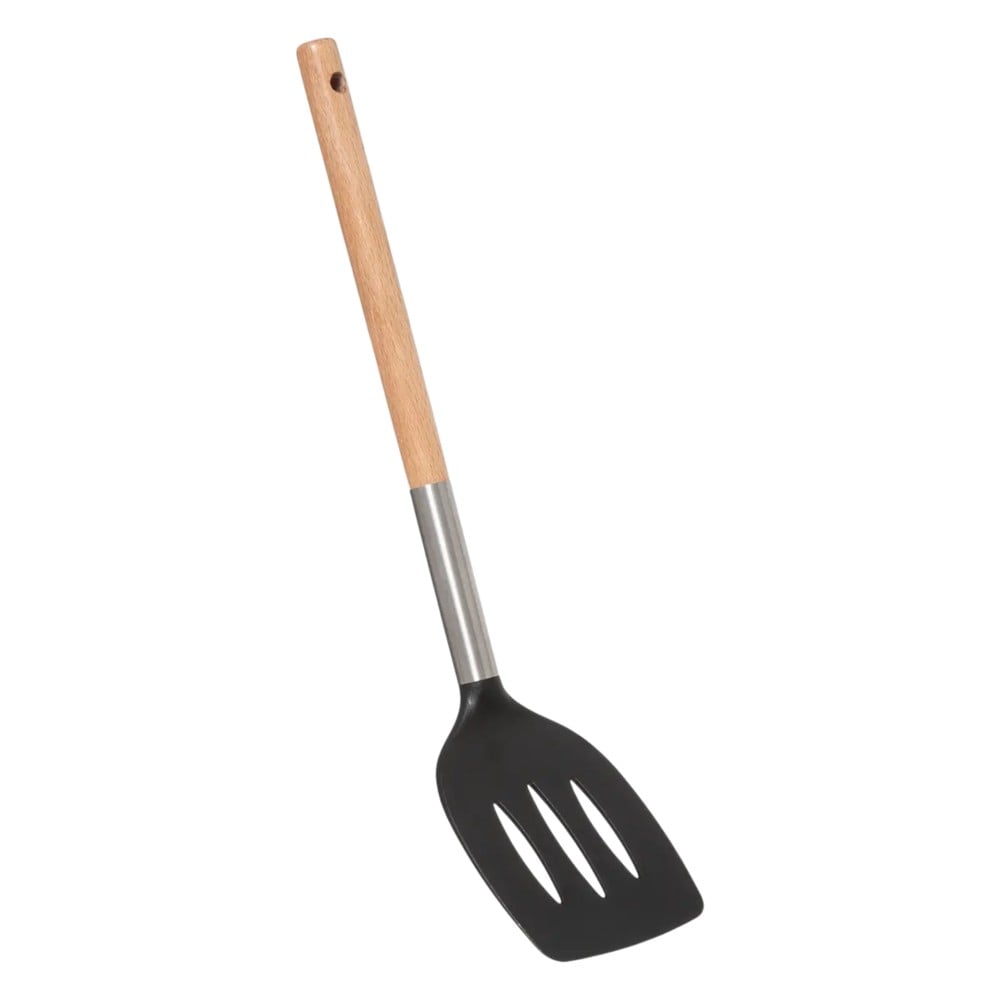 Kjo spatulë e veçantë kombinon bukurinë e drurit natyral me qëndrueshmërinë e najlonit. Me një gjatësi prej 34.5 cm, ajo është e përsosur për të shërbyer një larmi pjatash, që nga salcë makaronash te biftekët. Doreza e rehatshme prej druri të siguron një kapje të fortë, ndërsa pjesa e përparme e bërë prej najloni është e fleksibël dhe e rezistent ndaj njollës, duke e bërë të lehtë për t'u pastruar.