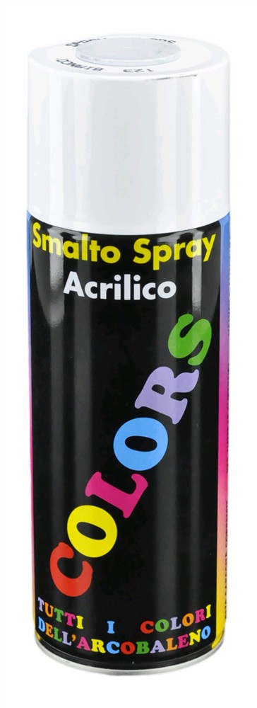 Sprai akrilik, 400 ml, ngjyrë e bardhë me shkëlqim. Bojë zmalti akrilike. Përdoret për të lyer në metal, plastik, dru, qelq, qeramikë etj. Sipërfaqja para aplikimit duhet të jetë e pastër nga graso, pluhuri dhe ndryshku. Largësia nga sipërfaqja në momentin e sprucimit duhet të jetë 20-30 cm. Mbulon afërsisht 2 metër katror. Tundeni mirë para dhe gjatë përdorimit.
