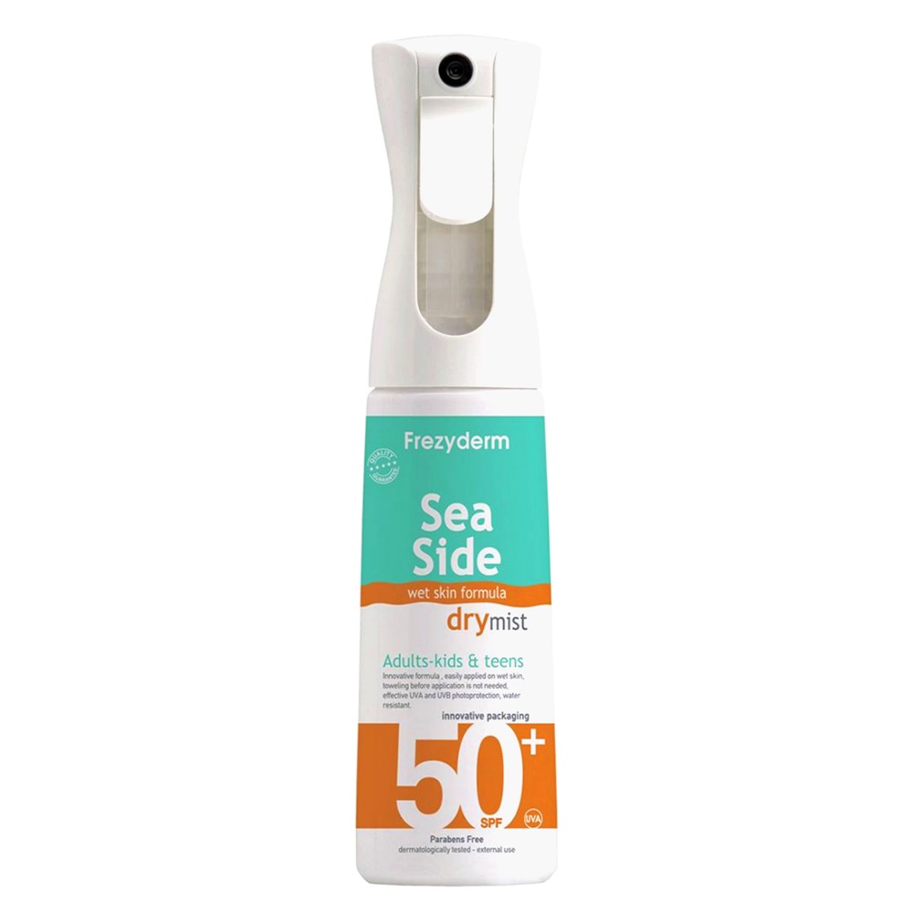 Spray për trupin me faktor mbrojtës ndaj diellit, me një formulë të thatë për lëkurë të lagur, Frezy Derm Sea Side 50+
