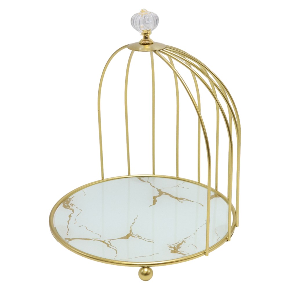 Stendë me një kat, e realizuar nga qeramika dhe metal në ngjyrën e bardhë, me dimensionet 20x21 cm. Ky produkt është një zgjedhje e shkëlqyer për të prezantuar ëmbëlsirat, frutat, ose produkte tjera në tavolinë.