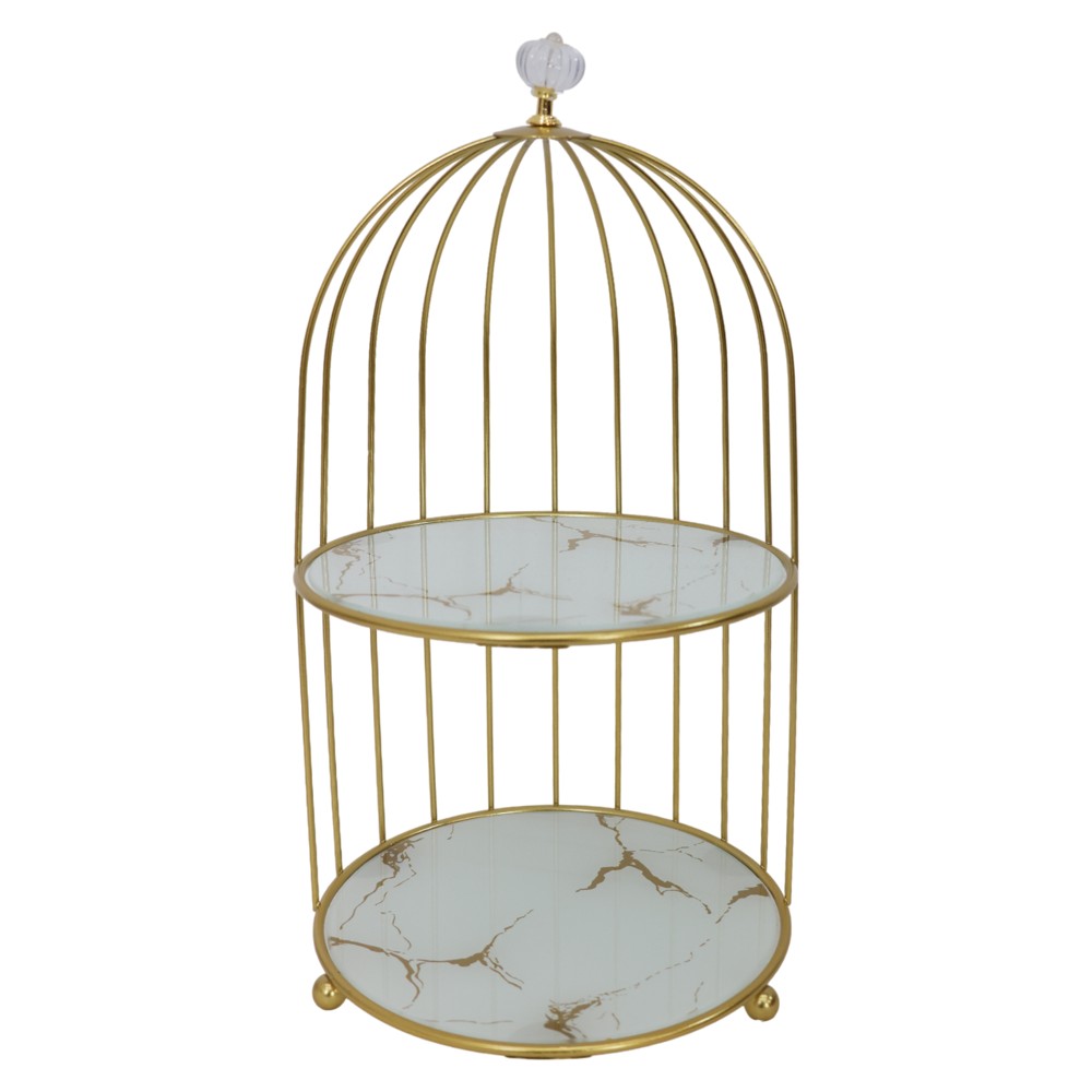 Stendë me dy kate, e realizuar nga qeramika dhe metal në ngjyrën e bardhë, me dimensionet 20x34 cm. Ky produkt ofron një hapësirë të mjaftueshme për të ekspozuar dhe organizuar ushqimet në një mënyrë tërheqëse.