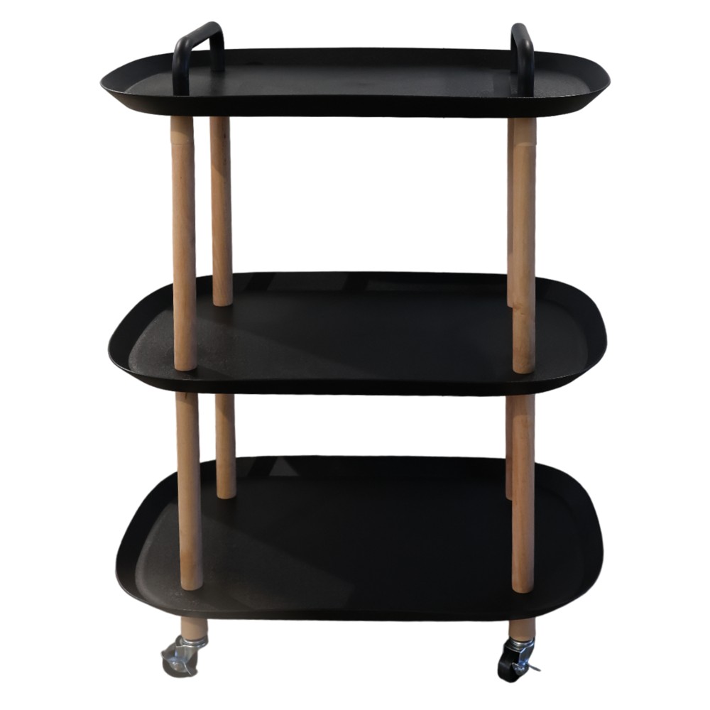 Stand with 3 layer, plastic/wood, black, 36x56xH80 cm