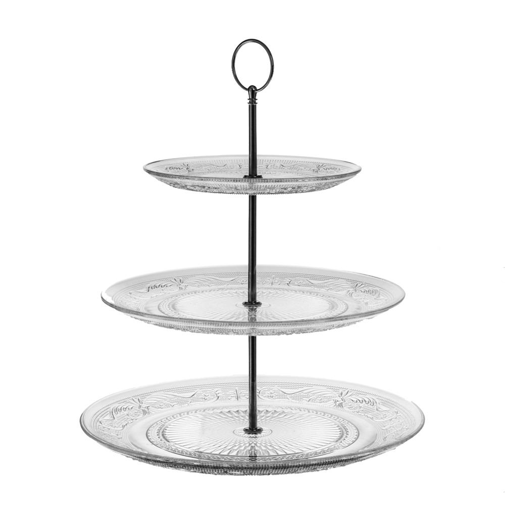 Stendë ushqimi me 3 kate, qelq+zink, transparente, Dia. 29x31 cm