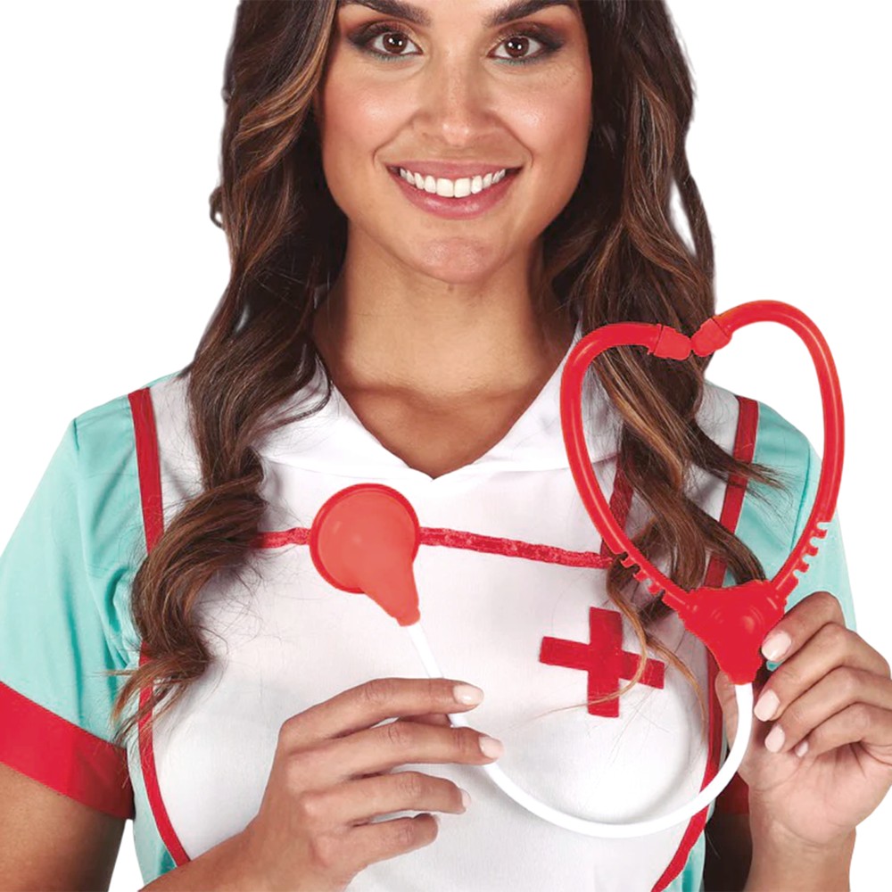 Stetoskop infermiere/mjeku për të kompletuar veshjen tuaj të kostumit të Halloween. Me këtë stetoskop ju do të vidhni zemrat e të gjithë pacientëve tuaj. Ideale për t'u kombinuar me aksesorë të tjerë të kostumit të mjekut/infermieres.