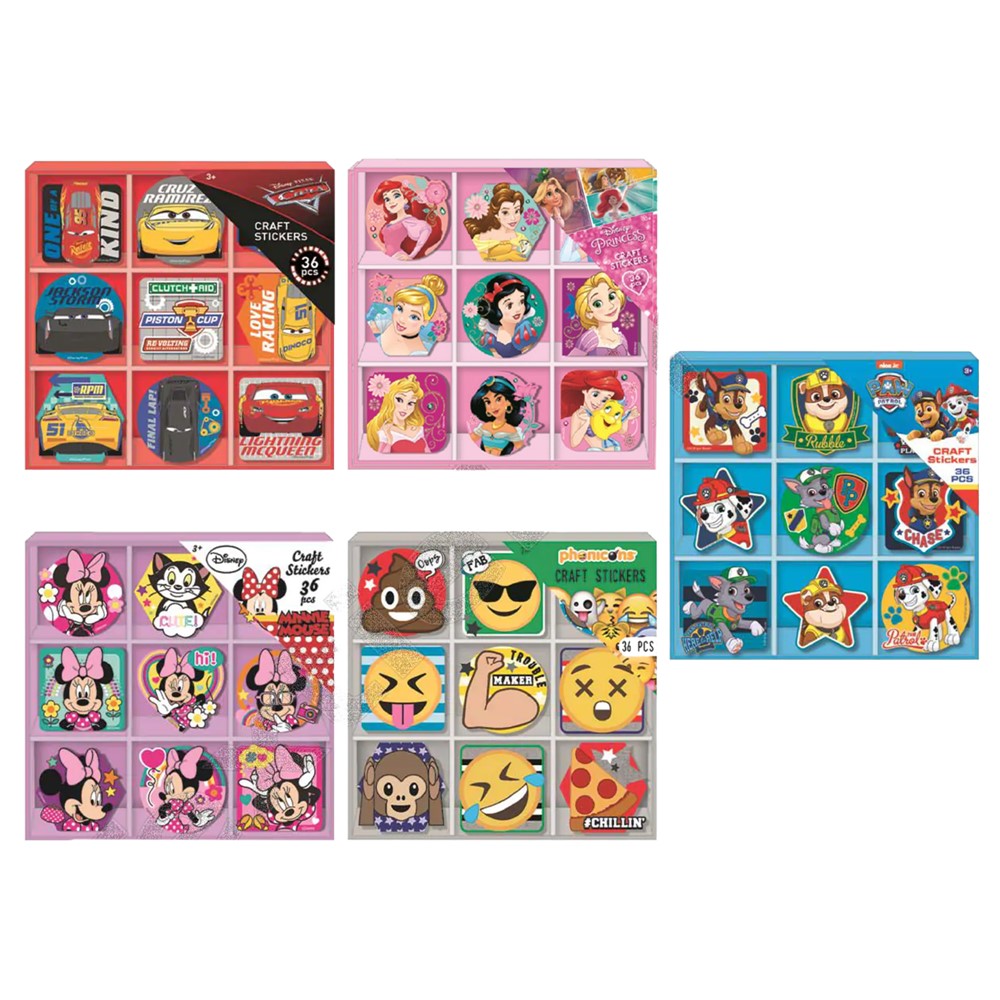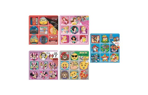 Stikera me figura për fëmijë, me dizajn Disney, prej materiali letre, në ngjyra të ndryshme. Përdoren për të dekoruar librat, fletoret, letrat, kartolinat, kutitë e dhuratave, si dhe dhomat e gjumit të fëmijëve, dhe mund të vendosen në sipërfaqet e letrës dhe kartonit, mobiljeve të ndryshme, dyerve, etj.