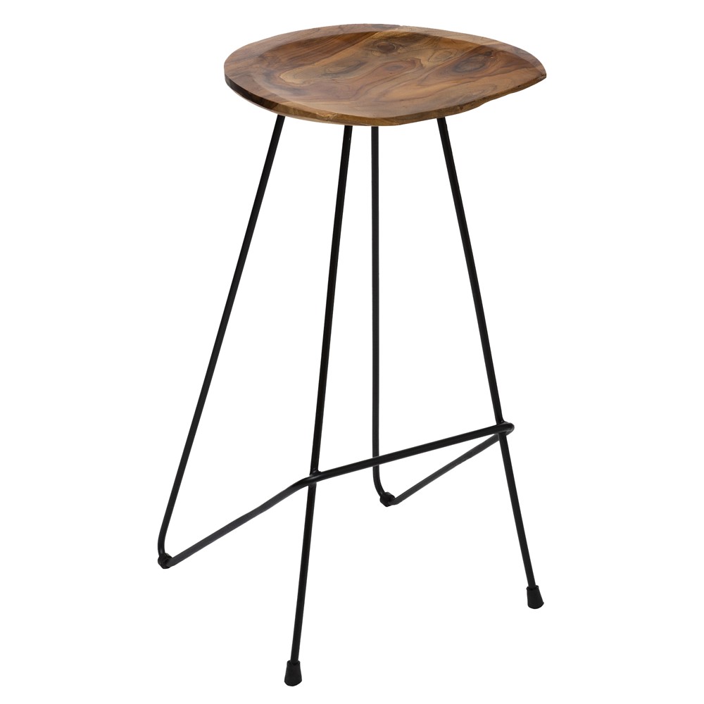 Stol bari, Sumar, strukturë metali, ulëse dru tik, e zezë/kafe, 38x39xH75.5 cm