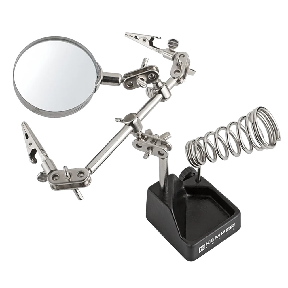 Suport mbajtës për saldimet me kallaj dhe lupë zmadhimi