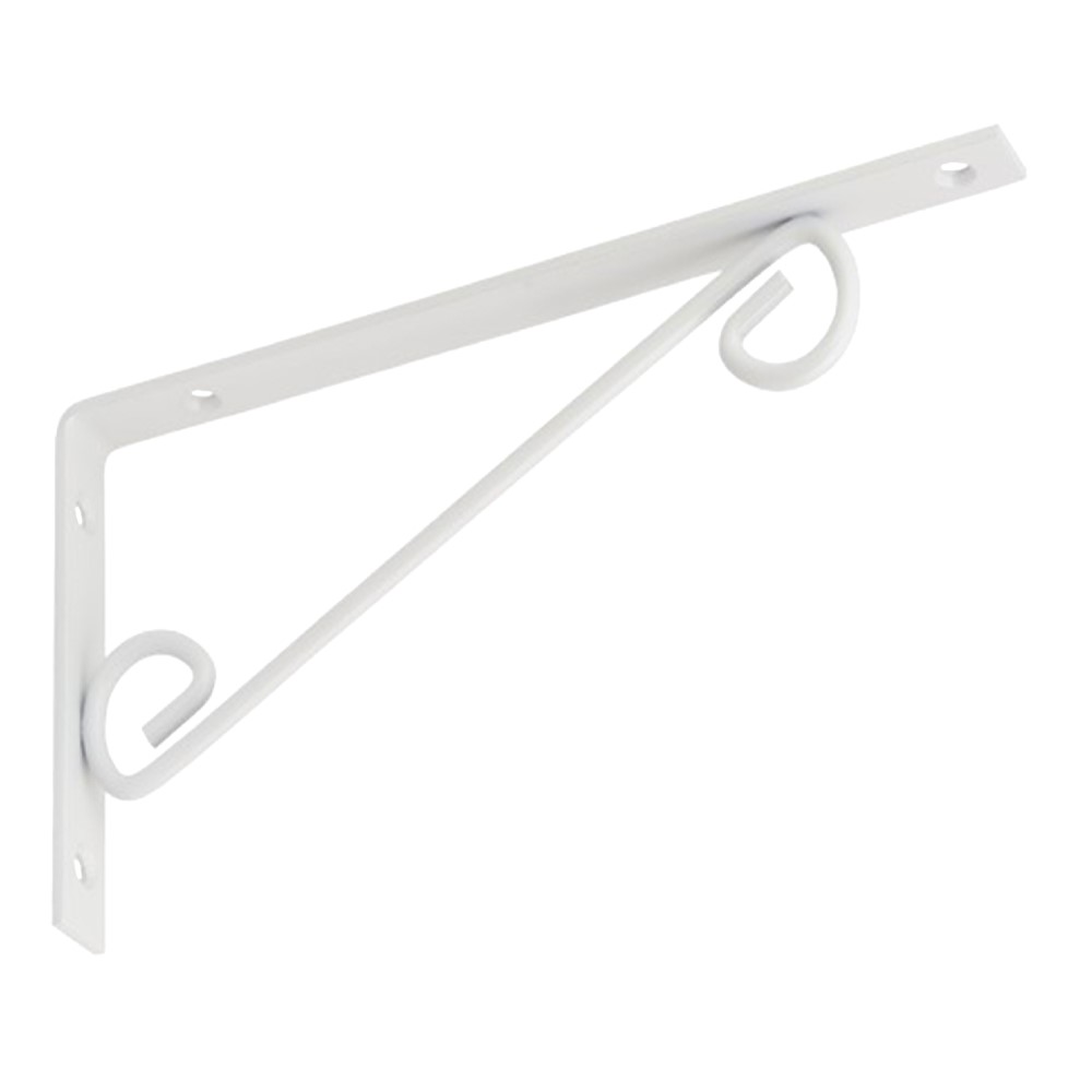 Suport rafti me zbukurime, prej materiali çeliku, në ngjyrë të bardhë, me përmasa 20x12.5 cm, i cili shërben si një aksesor dekorativ dhe funksional për ambientet e ndryshme. Materiali përbërës është i qëndrueshëm ndaj përdorimit, peshave të rënda, ndryshkut apo gërryerjes. Përdoret për montimin në mur të rafteve të vetë-qëndrueshëm, por gjithashtu mund të gjejë aplikime të tjera në ambiente profesionale dhe jo-profesionale.