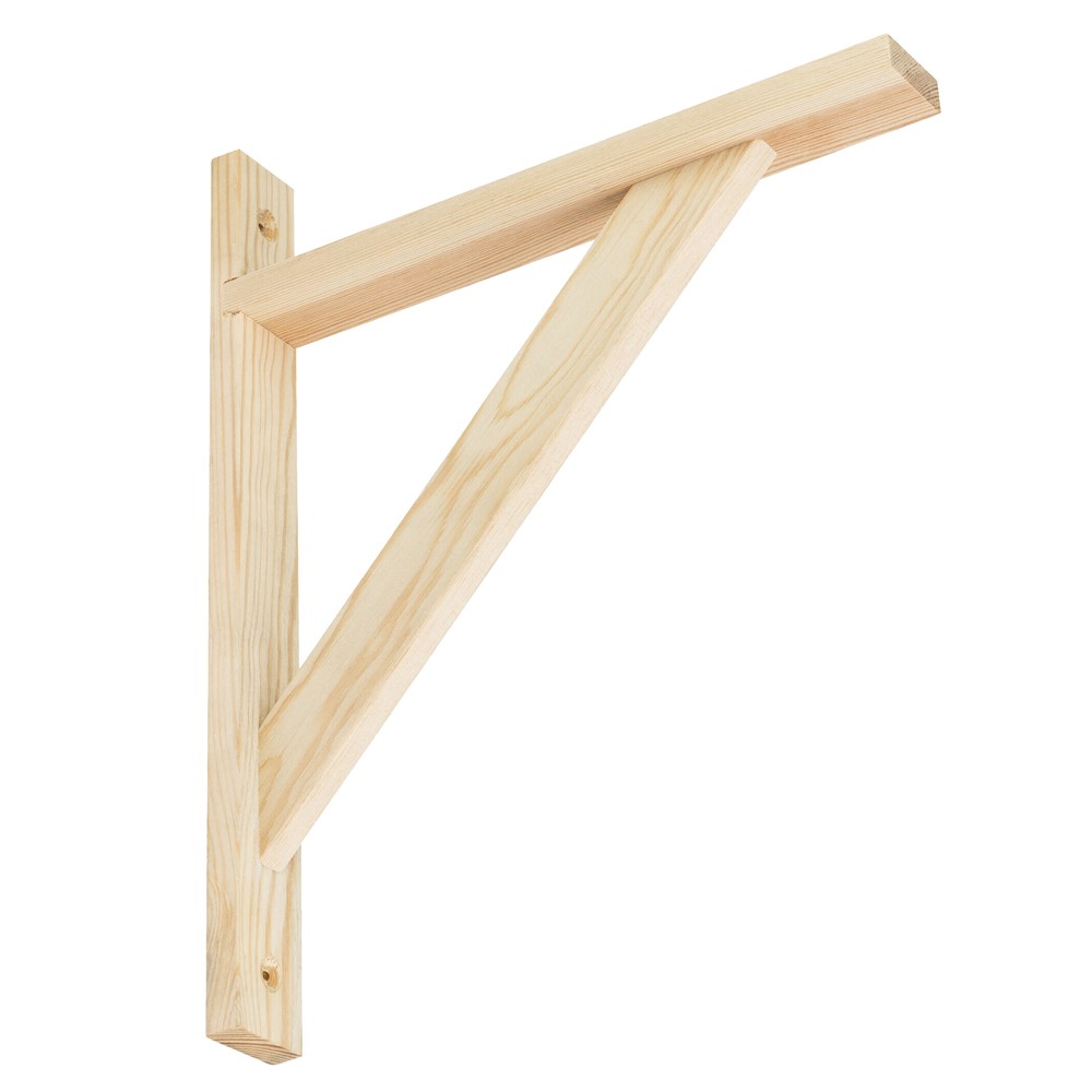 Suport rafti i përforcuar, prej materiali druri pishe, në ngjyrë natyrale, me përmasa 28x23 cm, i cili shërben si një aksesor funksional për ambientet e ndryshme. Materiali përbërës është i qëndrueshëm ndaj përdorimit dhe peshave të rënda, si edhe mund të lyhet me ngjyra të ndryshme, sipas dëshirës. Përdoret për montimin në mur të rafteve të vetë-qëndrueshëm, të përbërë nga i njëjti material, dhe mund të gjejë aplikim në ambiente profesionale dhe jo-profesionale.