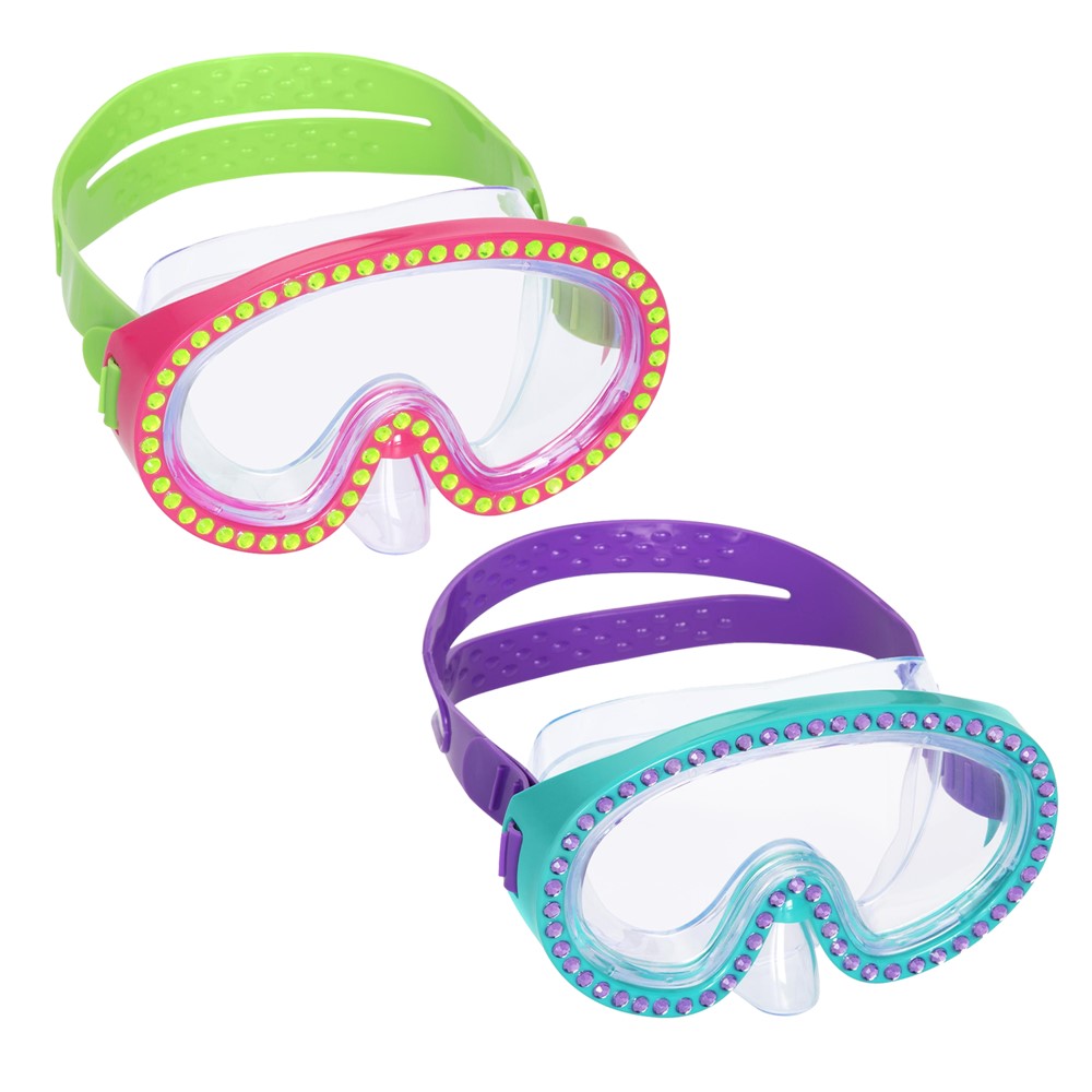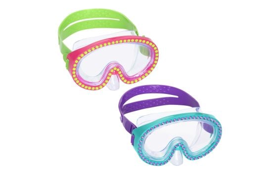 Maska Hydro-Swim™ Kids Sparkle 'n Shine është shoqëruesi i ri i shkëlqyeshëm për një ditë në ujë. Diamantët e tij të shndritshëm janë tërheqës dhe fëmijët mund t'i përdorin ato për të treguar personalitetin e tyre argëtues. Lentet janë bërë nga polikarbonat të qëndrueshëm me një shtresë mbrojtëse UV që mban rrezet e dëmshme të diellit larg syve tuaj. Përshtatje e rehatshme: Për një përshtatje të rehatshme dhe të rehatshme, shiriti i kokës me dy pjesë është plotësisht i rregullueshëm dhe vulat e dyfishta mbrojnë me siguri nga uji ingress. Shko sot noto me Maskën e Fëmijëve Hydro-Swim™ Sparkle 'n Shine!"