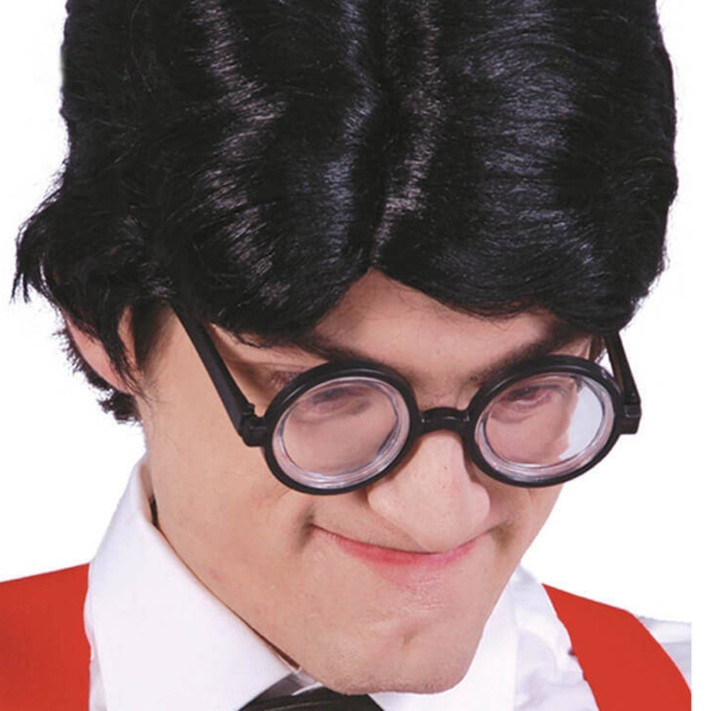 Syze rrethore për Halloween, prej materiali plastik, me përmasa 19 cm, në ngjyrë të zezë. Përdoren si aksesor për veshje të ndryshme Halloween-i apo karnavalesh.