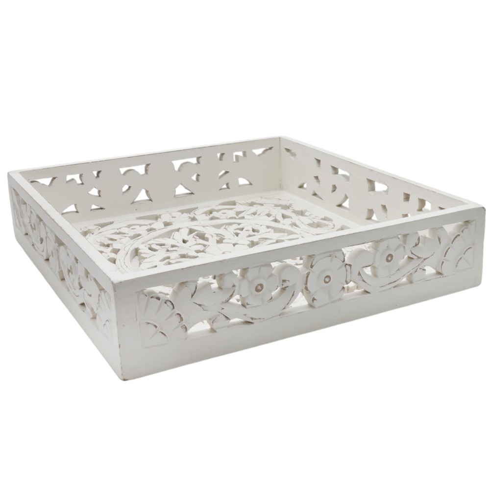 Tabaka dekorative , druri, e bardhë, L- 38x38xH8 cm