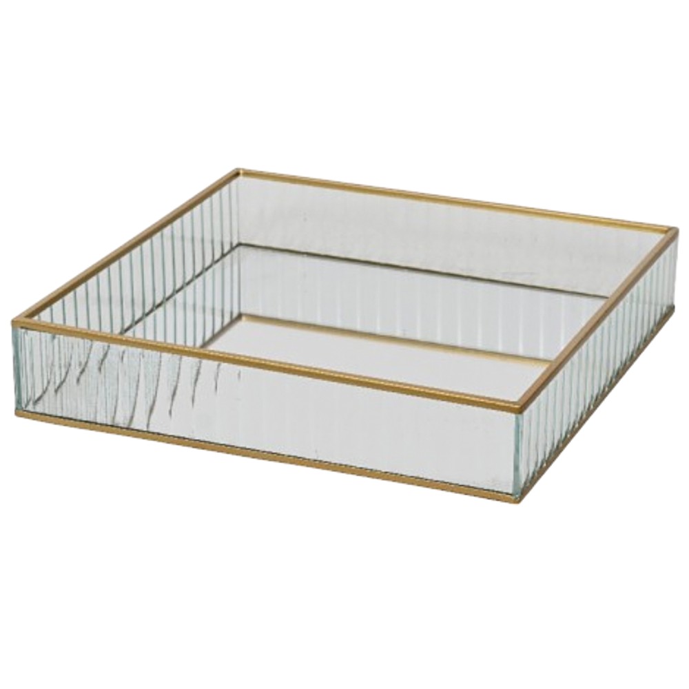 Tabaka dekorative, M, metalike/xham, e artë, 25x25xH4.5cm