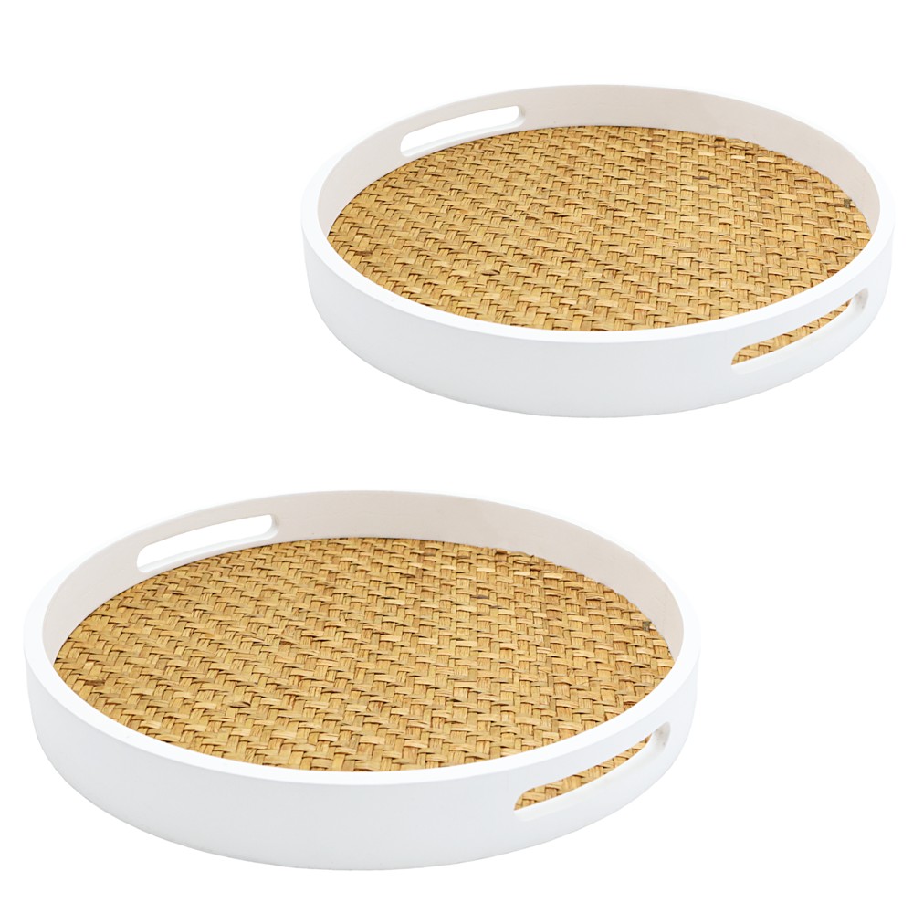 Tabaka dekorative, set 2 copë, kashtë, e bardhë/natyrale, 30x30 cm; 35x35 cm