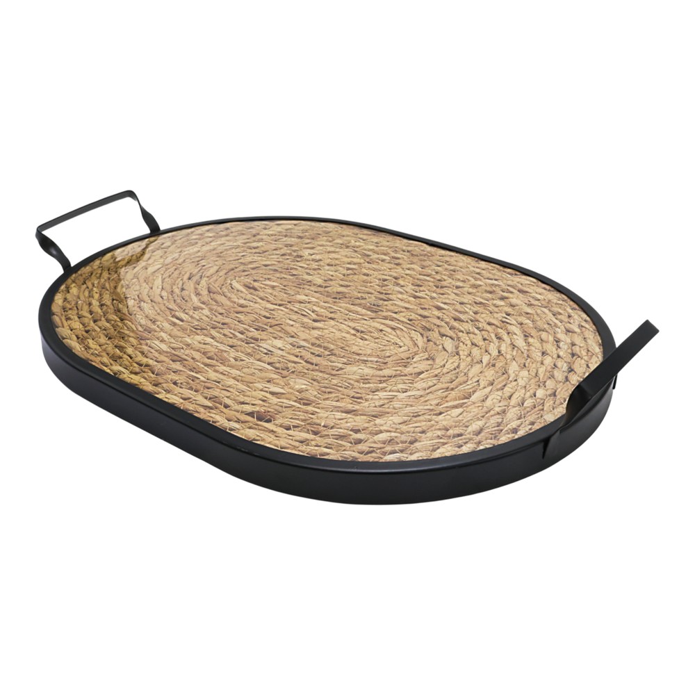 Tabaka dekorative me përmasa 39x29 cm përbëhet nga një kombinim elegant i materialeve xham, kashtë dhe metal në ngjyrë kafe dhe të zezë. Xhami i lëmuar i jep tabakas një pamje të pastër dhe të ndritshme, ndërsa kashta sjell një prekje natyrale dhe të ngrohtë, duke krijuar kontrast të këndshëm me strukturën metalike të fortë. Ky dizajn bashkon funksionalitetin me estetikën, duke e bërë tabakan të përshtatshme për servirjen e pijeve, ushqimeve apo për përdorim dekorativ në tryezat e ndenjjes, kuzhinë apo sallon. Metali i siguron qëndrueshmëri dhe stabilitet, ndërsa përmasat e saj kompakte e bëjnë të lehtë vendosjen dhe përdorimin në hapësira të ndryshme. Kjo tabaka dekorative është një zgjedhje praktike dhe stilistike për të shtuar elegancë dhe organizim në ambientin tuaj.