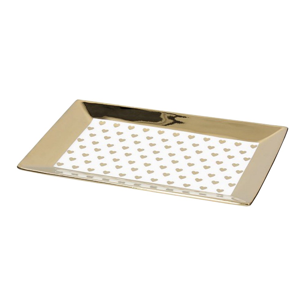 Po vlerësoni:Tabaka dekoruese, qeramikë, e bardhë me konturë floriri, 13x20 cm