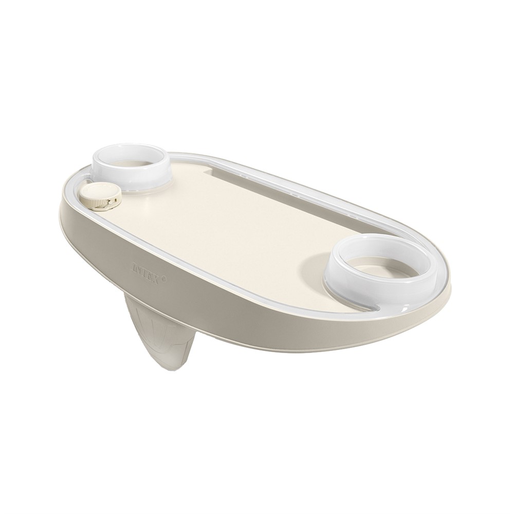 Shoqërojeni momentin tuaj të relaksimit në pishine me një pije apo ushqim të lehtë . Tabakaja ka dy mbajtëse gotash si dhe një mbajtëse tablete apo celulari. Gjithashtu ka dritë LED (funksionon në 2 bateri ).