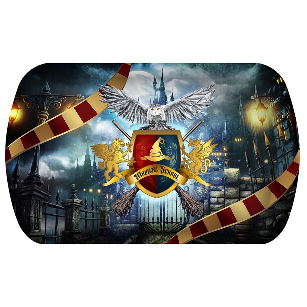 Tabaka servirje me dekor të shkollës magjike. Ideale për dekorin e tavolinës për festën e halloween.