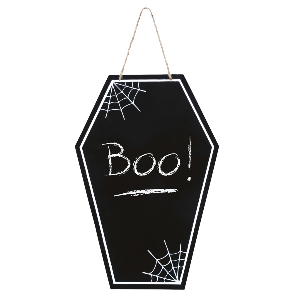 Tabela e zezë "BOO" për Halloween është një element dekorativ për të shtuar një ndjesi të tmerrshme dhe të veçantë të kësaj feste në ambientet e shtëpisë suaj. Kjo tabelë është bërë me një dimension prej 40x27 cm dhe është në ngjyrën e zezë, një ngjyrë shumë e përdorur për Halloween.