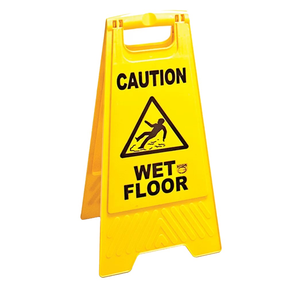 Trekëndësh sinjalizues qëndror me mbishkrim "Kujdes dysheme e lagur". Punuar me material polipropilen rezistent, me mbishkrim në 2 gjuhë. Përdoret në vendet ku ka fluksh lëvizjesh. Tabela lajmeron njerzit të kenë kujdes kur lëvizin në atë zonë pasi ka rrezik rëshqitje nga dyshemeja e larë. Ajo mund të shërbejë dhe si një sinjalizues kur ka një dëmtim apo një papastërti në zonë. Përdoret si në ambjente të mbrënshme dhe të jashtme dhe nuk dëmtohet nga kushtet atmosferike. Ngjyrë e verdhë.