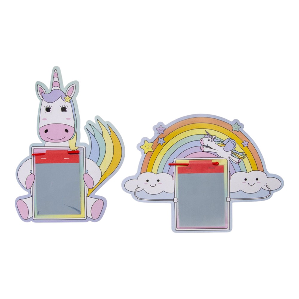 Tabelë vizatimi Magic Drawing Unicorn është një lodër kreative dhe argëtuese për fëmijët, me një dizajn të bukur të një unicorni. Me përmasa 24 cm, kjo tabelë lejon fëmijët të vizatojnë dhe krijojnë imazhe të ndryshme pa nevojën e bojërave, duke përdorur magjinë e vizatimit me ujë.