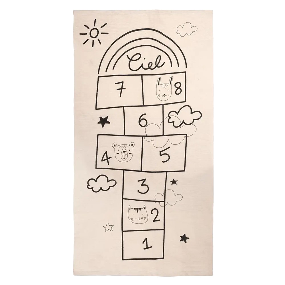 Tapet dekorues per dhome femijes, ne permase 150x80 cm, ne ngjyre bezhe me numra te zeza. Mund te perdoret si dekor ne dhomen e femijeve, apo si loje argetuese me ane te numrave.