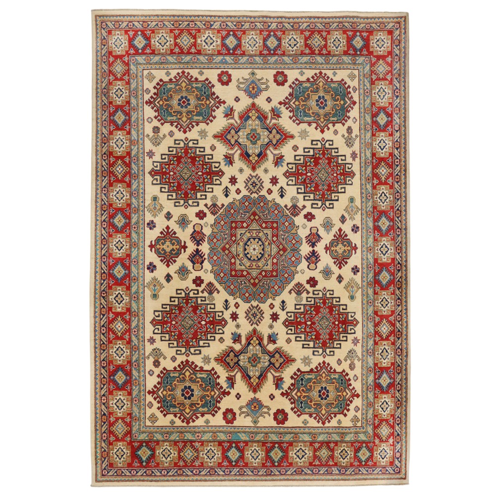 Ky tapet Ghazni është një vepër e vërtetë artizanale, krijuar për ata që kërkojnë diçka më shumë se thjesht një element dekorativ. I punuar me 100% lesh natyral, ai ofron një teksturë të dendur, të ngrohtë dhe jashtëzakonisht të qëndrueshme—karakteristikë dalluese e tapeteve të leshit të cilësisë së lartë. Leshi natyral siguron rezistencë të lartë, ngjyrë të qëndrueshme dhe një ndjesi të ngrohtë nën këmbë. Modeli shumëngjyrësh ndërthur tone të thella dhe ngjyra të buta në një dizajn që tërheq vëmendjen, duke sjellë energji, karakter dhe një frymë autentike orientale në çdo hapësirë. Përzierja shumëngjyrëshe krijon një pamje dinamike që ndryshon varësisht nga këndi i dritës. Çdo detaj i tij është punuar me kujdes, duke krijuar një balancë perfekte midis traditës dhe elegancës bashkëkohore. Dizajni i frymëzuar nga artizanati oriental e shndërron tapetin në një pjesë arti, jo thjesht një dekor. Me përmasat e tj, ky tapet bëhet pjesa kryesore e dhomës—ideal për ambiente të mëdha si dhoma ndenjeje, zyra luksoze apo çdo hapësirë që kërkon një element me prezencë të fortë vizuale. Për të ruajtur cilësinë dhe jetëgjatësinë e tapetit, këshillohet pastrimi kimik profesional, pasi ndihmon në mbajtjen e strukturës së fibrave dhe ruajtjen e ngjyrës.