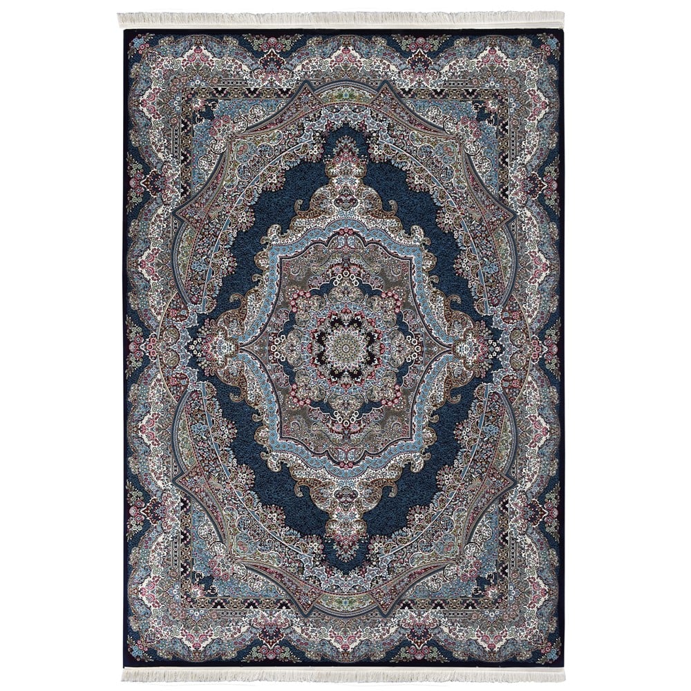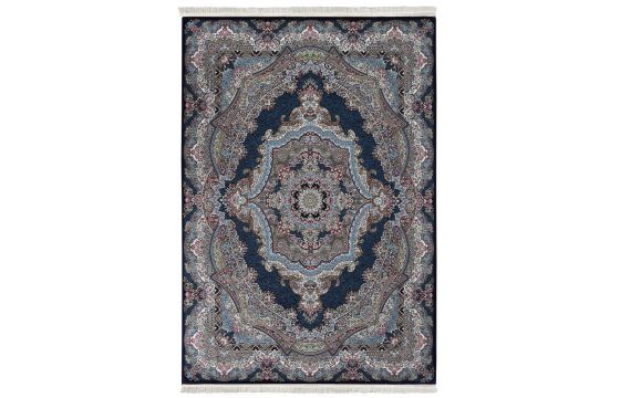 Tapet Persian me përbërje 100% akrilik. Ngjyra baza blu me ngjyra të ndryshme. Thekët prej pambuku dhe dendësia shumë e madhje prej 2 miljon e 400 mijë nyje për metër katror i japin këtij tapeti cilësi dhe jetëgjatësi. Falë dendësisë shumë të madhe tapeti është i sigurt nga papastërtitë pasi në qoftë se pastrohet menjëherë ato nuk arrijnë të depërtojnë në bazën e tapetit. Gjatësia e fijes 6mm. I rekomanduar të lahet në mënyrë profesionale.