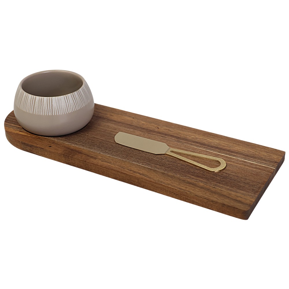 Tas antipasta, qeramike/druri, kafe, 12 x 32 x H 6 cm