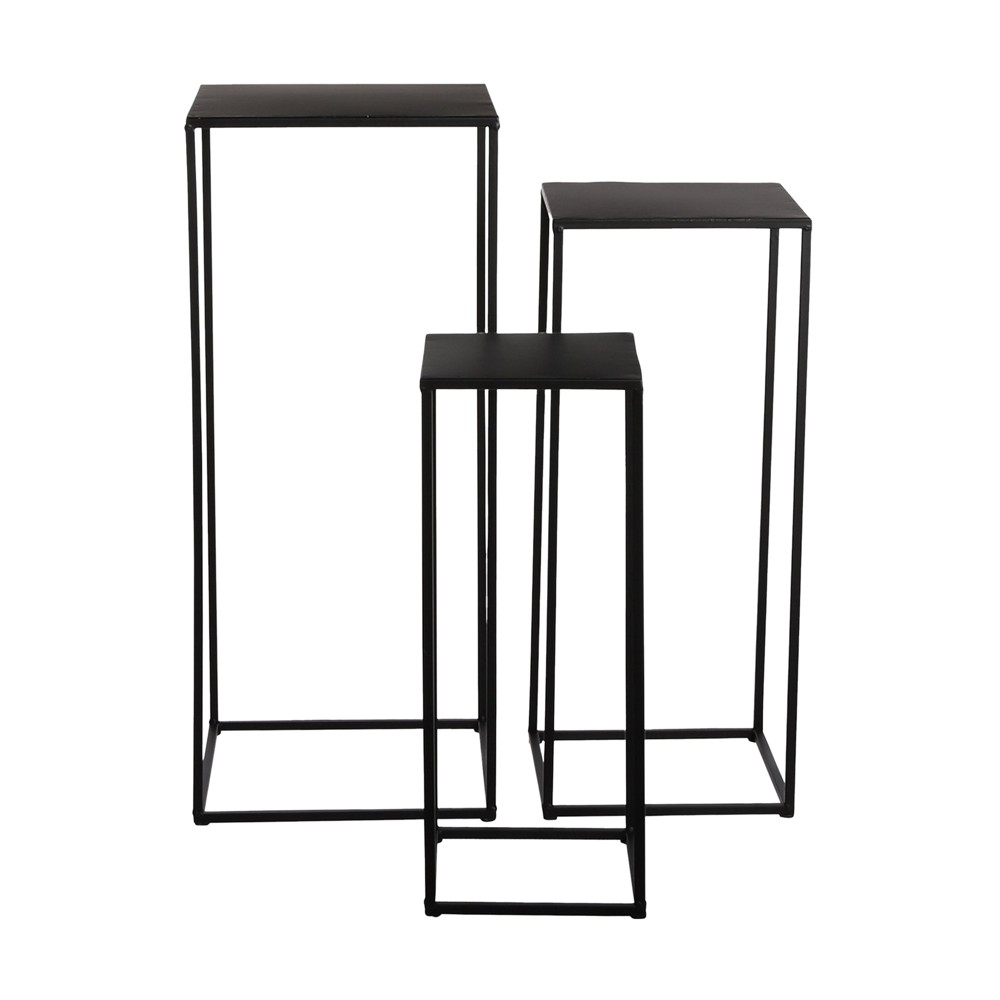 Tavolinat anësore "Quinty" janë një set elegant i tre tavolinave të dizenjuara për të shtuar stil dhe funksionalitet në ambientin tuaj. Me një konstruksion metalik të zezë dhe përmasa të ndryshme për secilën tavolinë (20x20xH50 cm, 25x25xH60 cm, 30x30xH70 cm), ky set ofron fleksibilitet për ta përshtatur me hapësirën tuaj. Perfekte për të vendosur lule apo dekoracione të tjera.