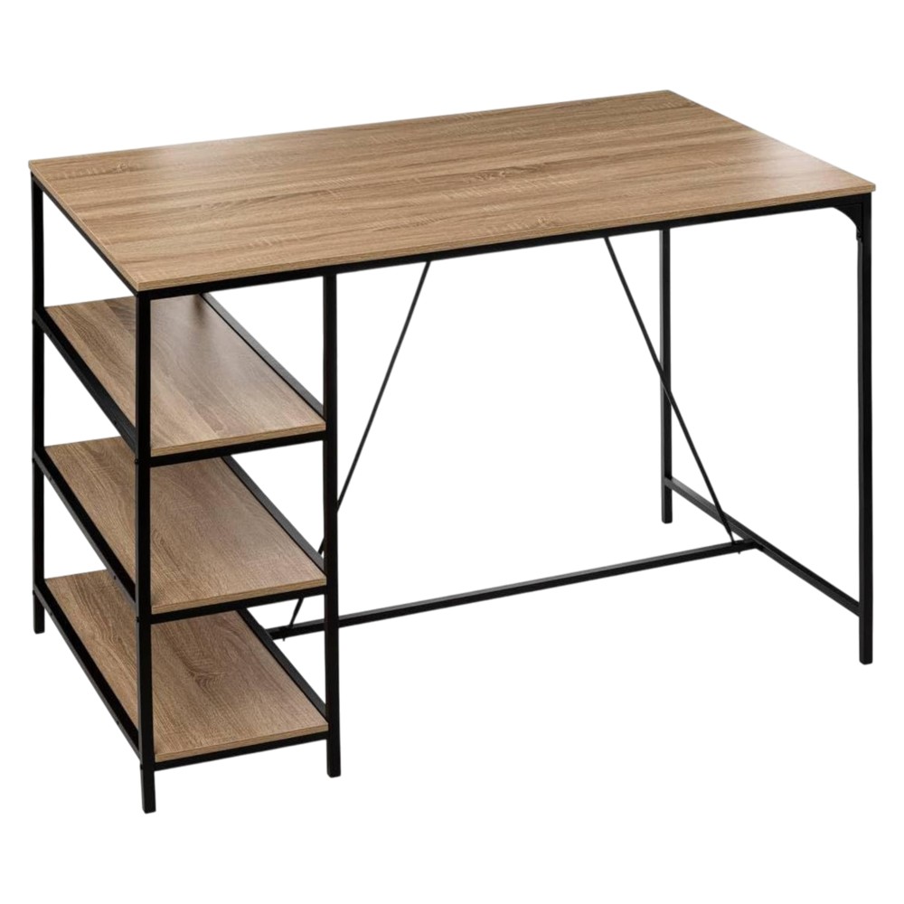 Tavolinë bari moderne dhe praktike me tre rafte funksionale për ruajtje shtesë. E ndërtuar nga materiale të qëndrueshme melaminë dhe çelik, në kombinim ngjyrash natyrale dhe të zeza, kjo tavolinë ofron një sipërfaqe të gjerë pune dhe hapësira të organizuara për çdo nevojë. Me dimensionet 140x80x103 cm, është zgjedhja ideale për hapësira të ndryshme sociale apo profesionale, duke sjellë stil dhe funksionalitet në ambientin tuaj.