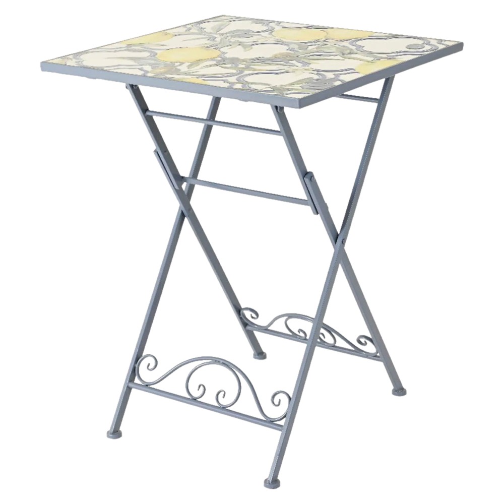 Tavolinë Bistro katrore Mosaic, metal/pllakë, nuanca blu me dekore limoni, 58x58xH76 cm