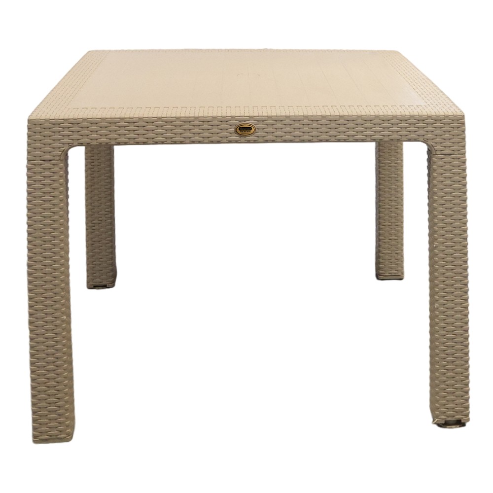 Tavolina katrore është një shtesë elegante dhe funksionale për çdo ambient. E dizajnuar me kujdes, kjo tavolinë është e ndërtuar me materiale plastike cilësore dhe vjen në një ngjyrë të bukur kapuçino. Dimensionet e saj janë 90x90xH76 cm, duke e bërë atë një zgjedhje të përshtatshme për shumë ambiente të ndryshme. Hapsirë e përshtatshme për të akomoduar deri në 6 persona.
