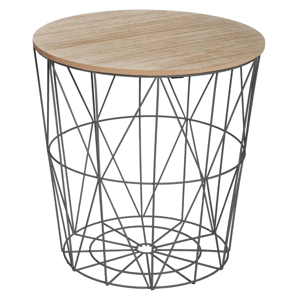Tavolinë këndi, Kumi, metalike/dru, e zezë/natyrale, Ø39.5xH41 cm