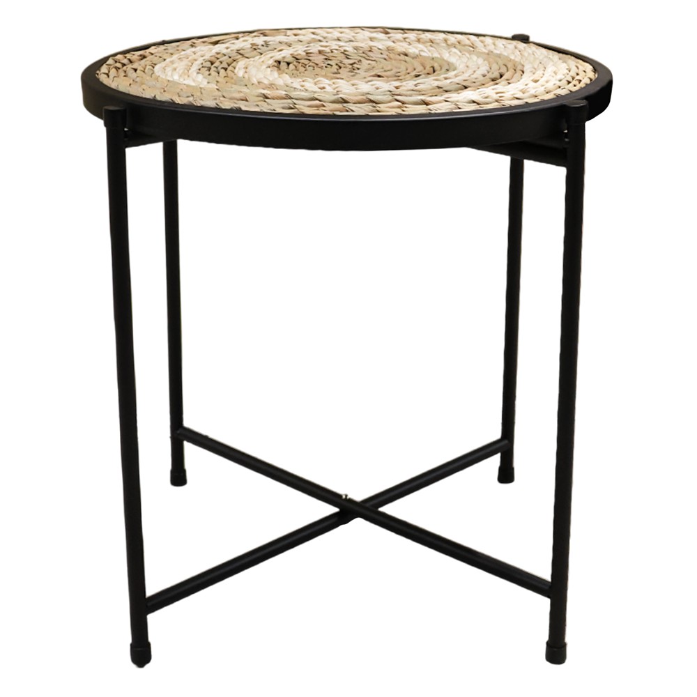 Tavolinë mesi, metalike/kashtë, e zezë/natyrale, 40x42 cm