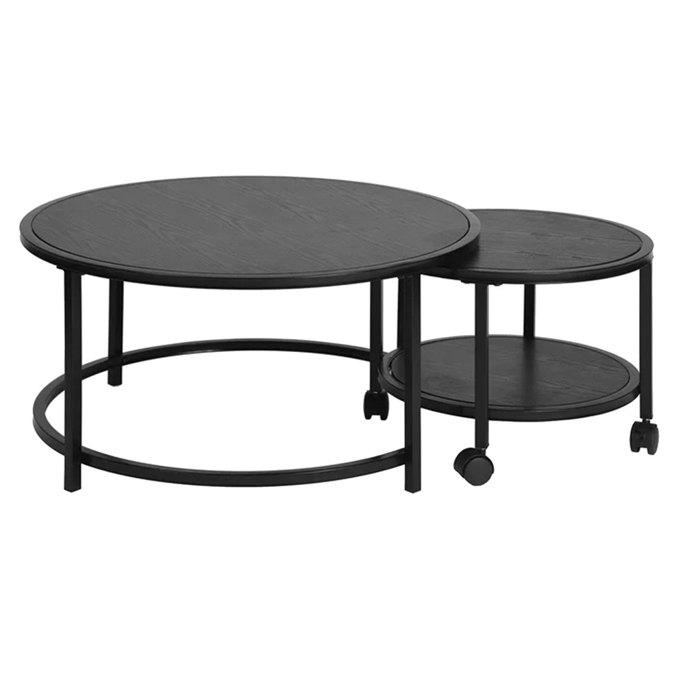 Middle table, Neka, set of 2 pieces, metal structure, melamina top, black, S-50x50xH36 cm; M-80x80xH40 cm