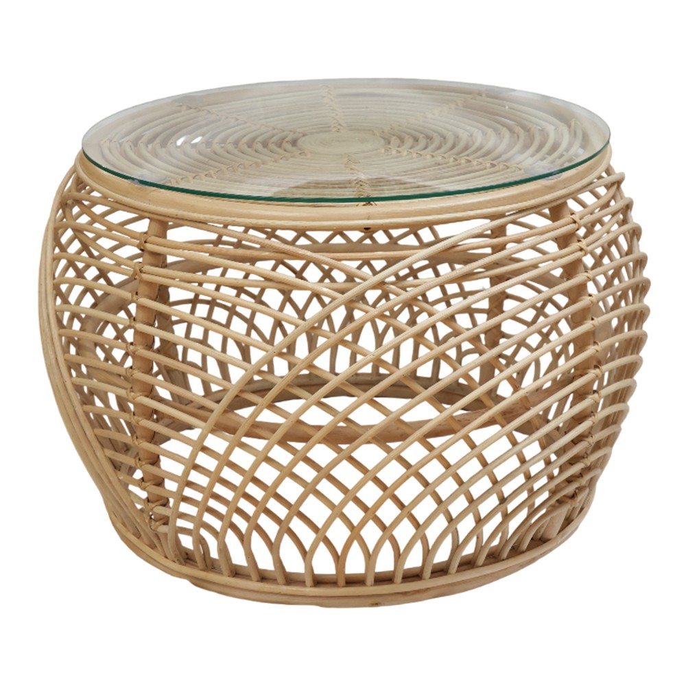 Tavoline mesi rrethore, Acro, rattan, xham I temperuar, ngjyre natyrale, D70xH45 cm