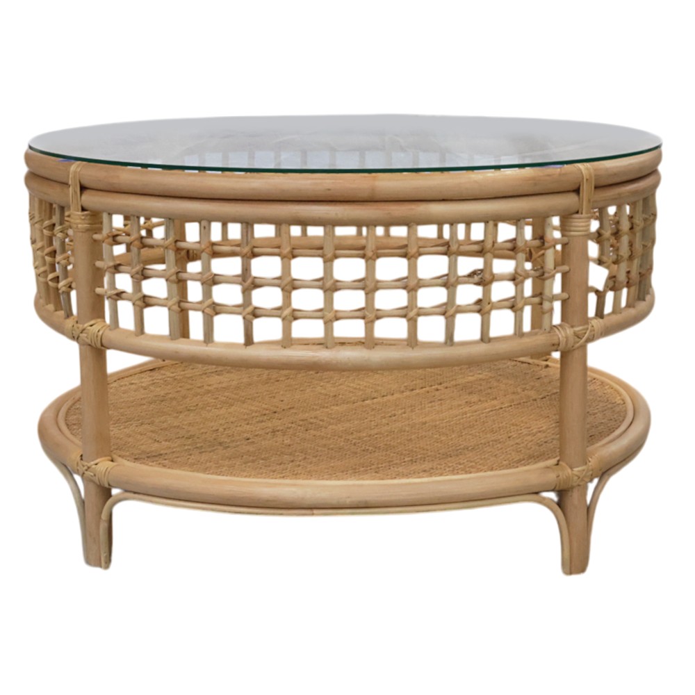 Tavoline mesi rrethore, Oscar, rattan, xham I temperuar, ngjyre natyrale, D80xH47 cm