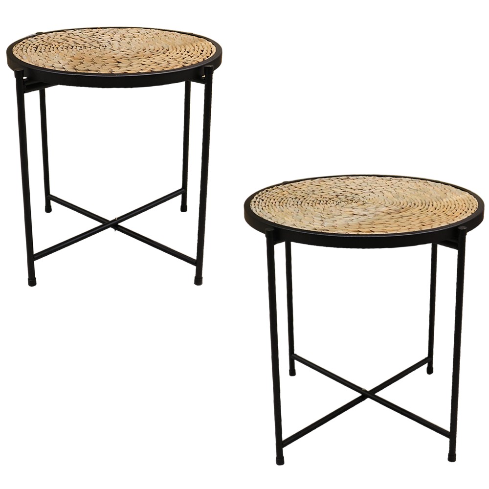 Ky set tavolinë mesi ofron një kombinim të bukur mes elementeve metalike dhe natyrale, duke krijuar një estetikë tërheqëse dhe të modernizuar. Seti përfshin dy tavolina me dimensione të ndryshme dhe të përshtatshme për çdo ambient. Struktura e saj e zezë e metalit jep një ndjesi moderne dhe elegante. Tavolinat mund të përdoren si shtesa në dhomën tuaj të ndenjes, si tavolina kryesore dhe tavolinë ndihmëse, ose në çdo hapësirë tjetër ku do të duhej një sipërfaqe shtesë. Përveçse janë praktike, ato gjithashtu shërbejnë si objekte dekorative që shtojnë stil dhe personalitet në ambientin tuaj